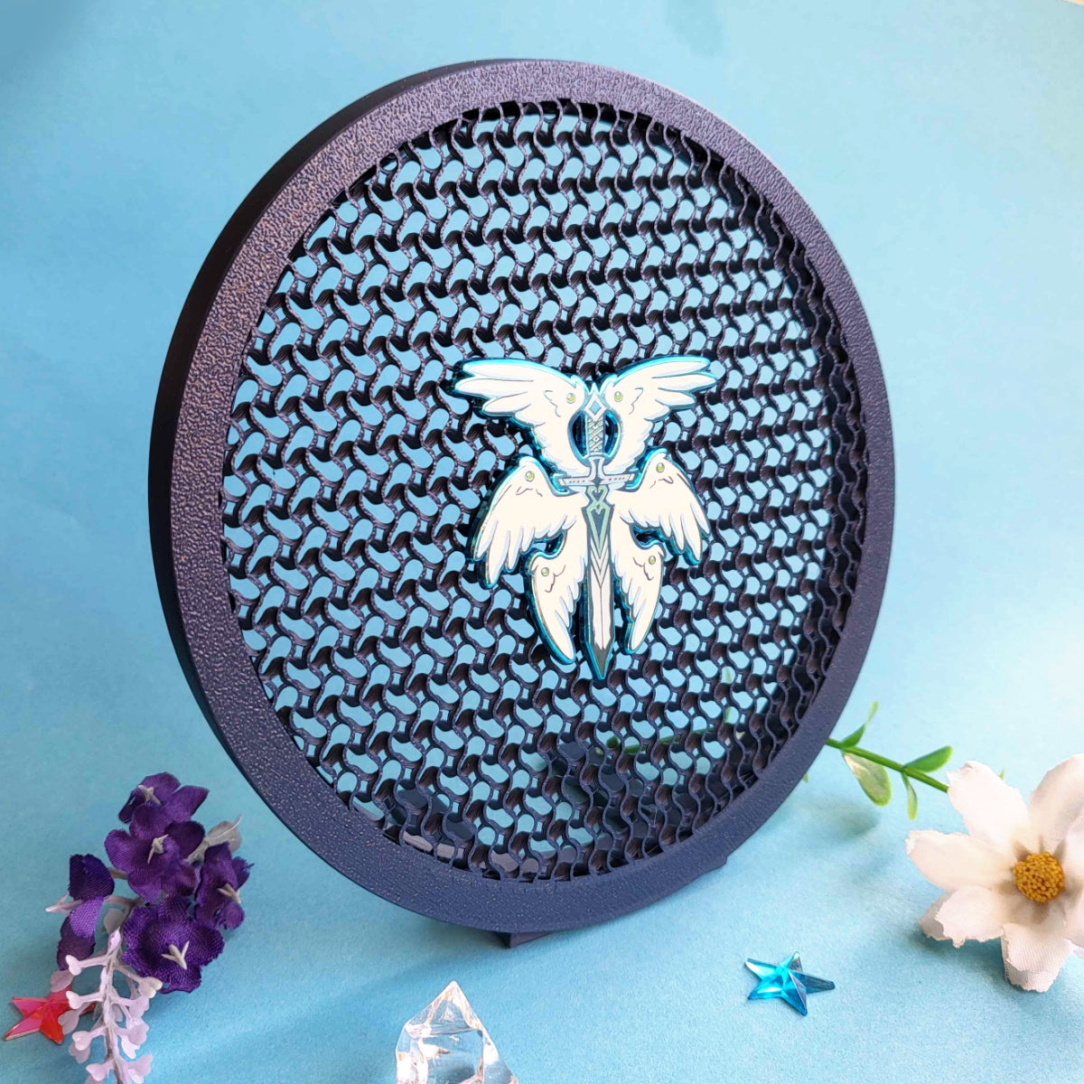 A simple round 3D pin display, perfect for displaying enamel pins, buttons or more!